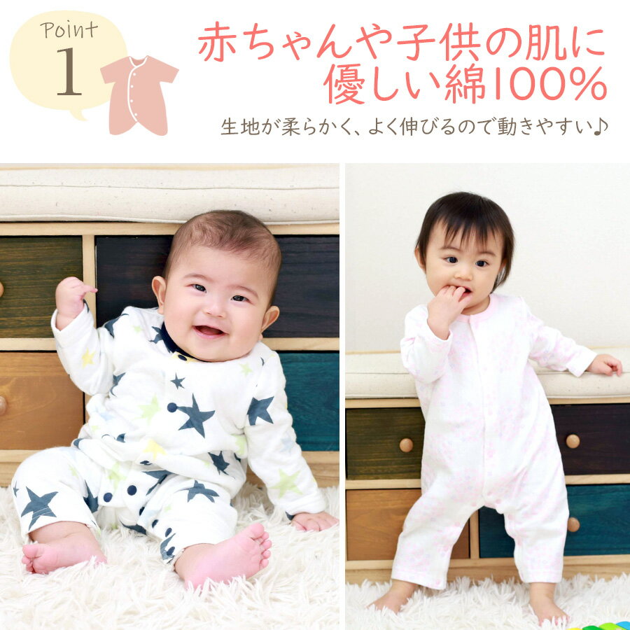 【即納】 園ママサポート プチプラ 接結コットン 長袖 カバーオール 洗い替え お着替え 綿100% 赤ちゃん 乳児 園児 ベビー 服 60 70 80 ロンパース つなぎ 可愛い 女の子 男の子 保育園 出産祝い ギフト 贈り物 プレゼント