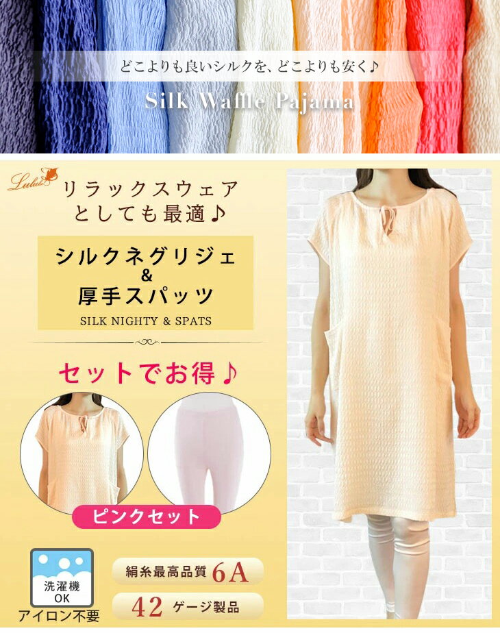 シルクネグリジェ&厚手スパッツ ピンクセット レディース 女性用 極上シルク フリーサイズ ワッフル加工 22匁 ギフト 母の日 絹 6Aランク ネグリジェ 寝巻き ナイティ 寝間着 部屋着 ルームウェア ナイトウェア 吸湿 保湿 肌に優しい 秋冬 楽々 商品価格:16,920円 レビュー件数:0件 レビュー平均:0(5点満点) 楽天で購入 トップページへ
